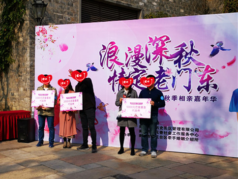 为增加单身的朋友的交友机会,认识更多新朋友,11月9号,天气凉爽,由秦淮团区委主办,信阳门东历史街区管理有限公司、信阳西子花香社会工作服务中心承办,信阳市雨花台区牵手婚姻介绍所协办的《浪漫深秋 情定老门东》的相亲活动如期举行,此次特别策划了新的相亲交友模式,打破以往只看资料的单调尴尬。利用老门东场地优势,开展多参与、多体验、多互动、多交流、多合作,多趣味的“游园会”模式,让大家在快乐气氛中相识、相恋。